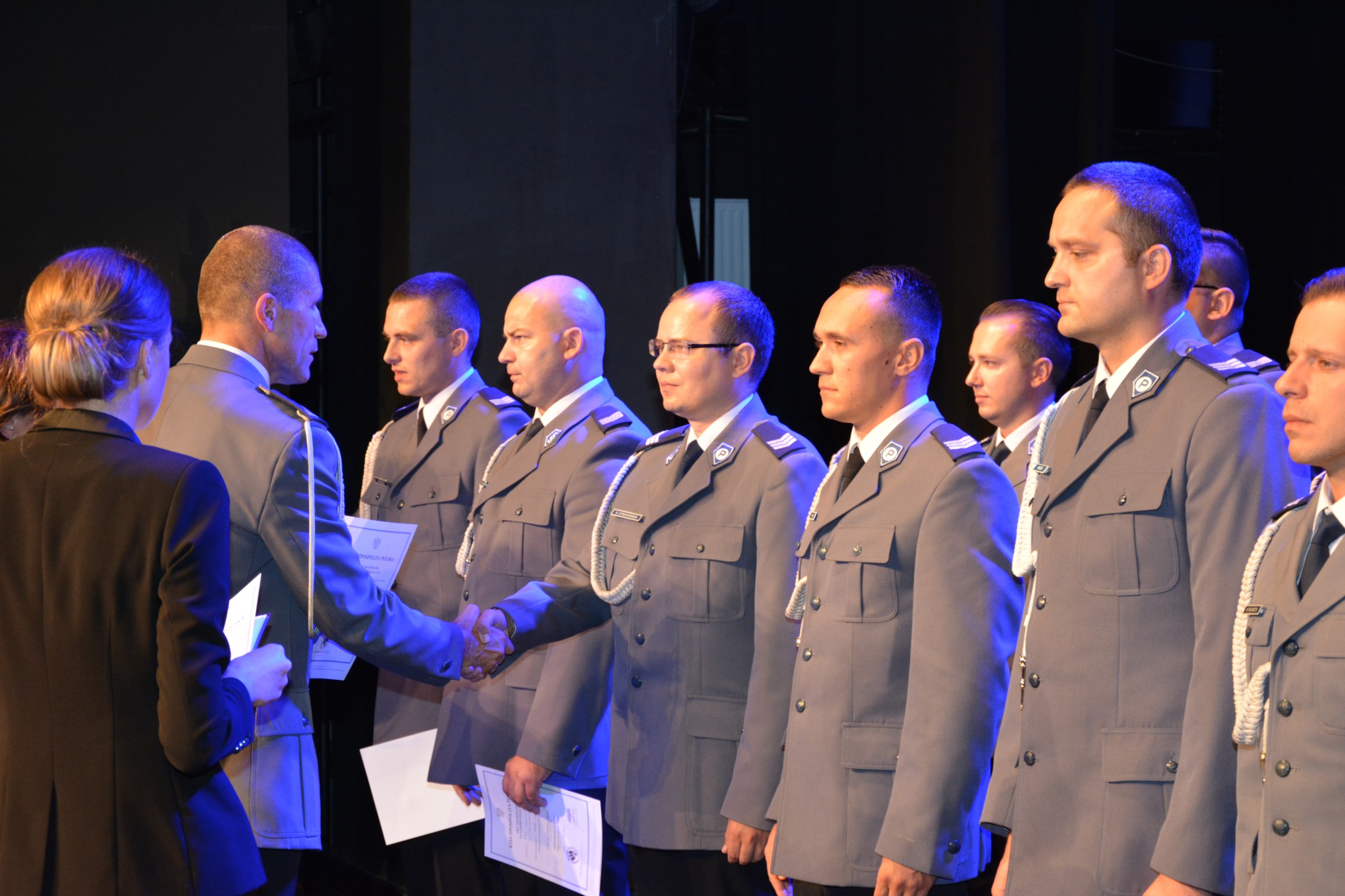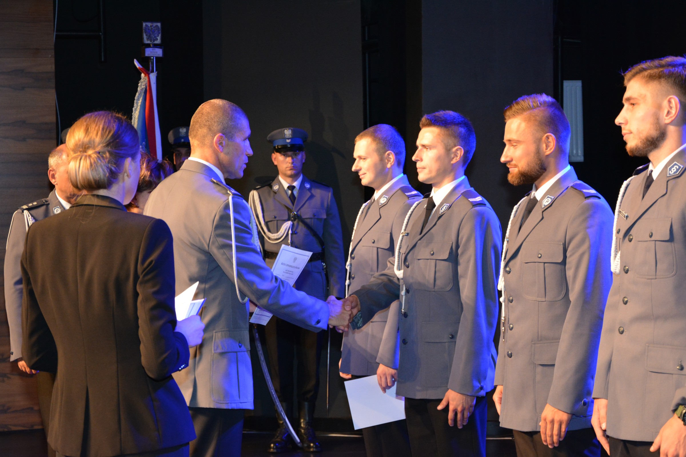 Awanse wręczali: Wicewojewoda Wielkopolski Pani Marlena Maląg, I Zastępca Komendanta Wojewódzkiego Policji w Poznaniu insp. Roman Kuster oraz Komendant Powiatowy Policji w Ostrowie Wielkopolskim mł. insp. Piotr Wilkowski.