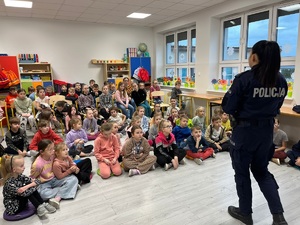 Policjanci najmłodsze dzieci uczą jak należy poruszać się do i ze szkoły będąc pieszym, przypominają też o prawidłowych zachowaniach będąc pasażerem.