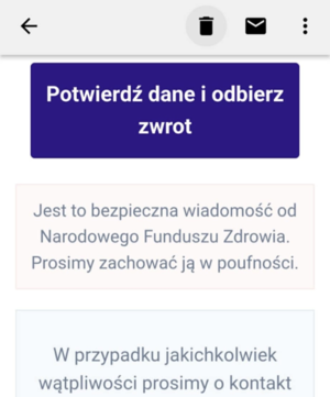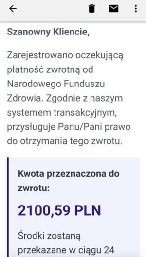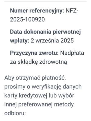 NFZ nigdy nie prosi o pieniądze ani nie wysyła linków do „zwrotu środków”.