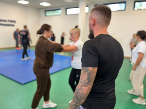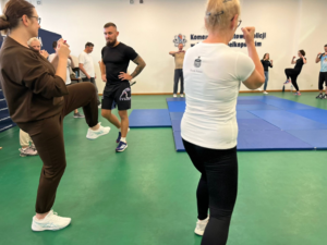 Szczególną część szkolenia poświęcono sposobom deeskalacji konfliktów i radzeniu sobie z agresją, które prowadził nadkom. Maciej Święcichowski, członek Zespołu Antykonfliktowego Policji w Poznaniu. W trakcie zajęć uczestnicy poznawali strategie zapobiegania eskalacji agresji oraz praktyczne techniki komunikacyjne, które pozwalają bezpiecznie interweniować w trudnych sytuacjach.