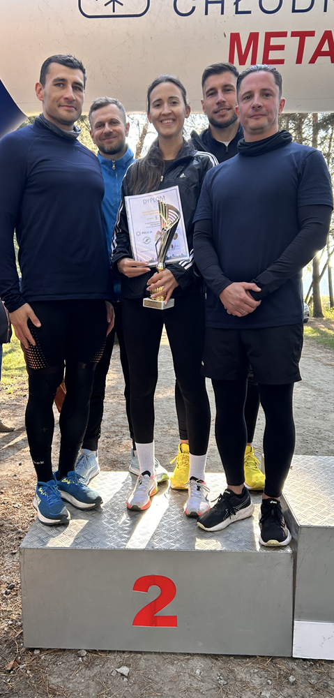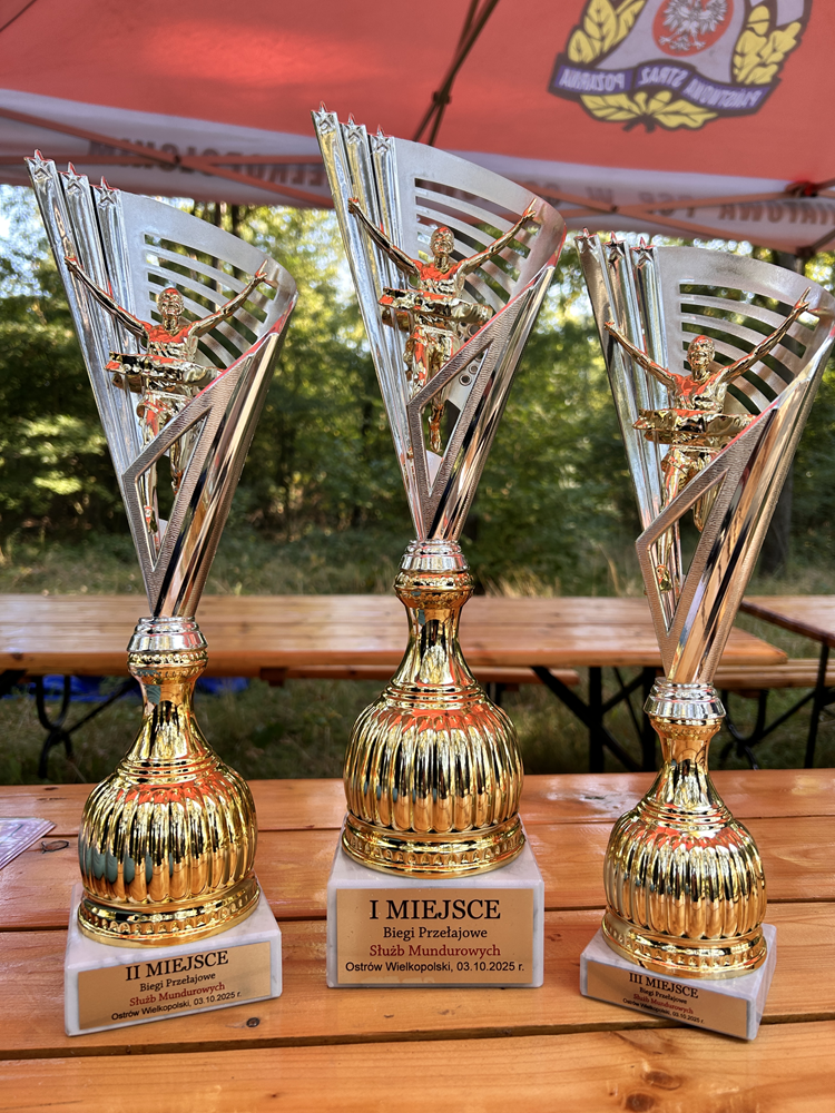 Sztafetowe biegi przełajowe służb mundurowych w Ostrowie Wielkopolskim. Reprezentacja ostrowskiej komendy na podium.