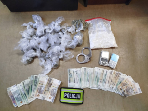 Podczas wykonywanych czynności funkcjonariusze zwrócili uwagę na młodego mężczyznę, który zachowywał się nerwowo. Jak ustalono, chwilę wcześniej wyszedł on z jednego z garaży. Policjanci postanowili go wylegitymować. W trakcie czynności przy mężczyźnie znaleziono zawiniątko foliowe z suszem roślinnym, który – jak wykazało wstępne badanie – był marihuaną. Mundurowi przy 20-latku zabezpieczyli także ponad 2,5 tysiąca złotych w gotówce.