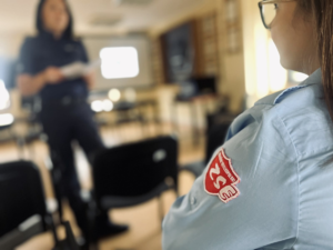 Podczas spotkania funkcjonariuszki ostrowskiej komendy opowiedziały o swojej codziennej pracy, a także szczegółowo przedstawiły etapy rekrutacji do Policji – od wymagań formalnych, przez testy sprawnościowe, aż po rozmowę kwalifikacyjną i szkolenie podstawowe.